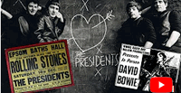 Top left to right; with The Presidents at the Red Lion in 1964, on the first Ziggy Stardust US Tour in 1972 and Above; at Ford Lane Recording Studio in 2016