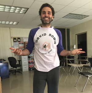 Brian Nazarof at the  Everyday Gourmet, Glenview, Chicago, IL. USA wearing a 1972 David Bowie T-Shirt recently aquired from Robin              |