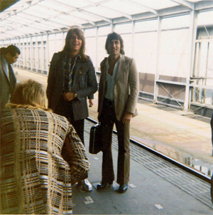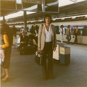 Robin waiting for the Bullet Train in Japan with Suzi Ronson (left)   |