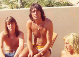 Robin with Mick and Suzi Ronson behind in Florida   |
